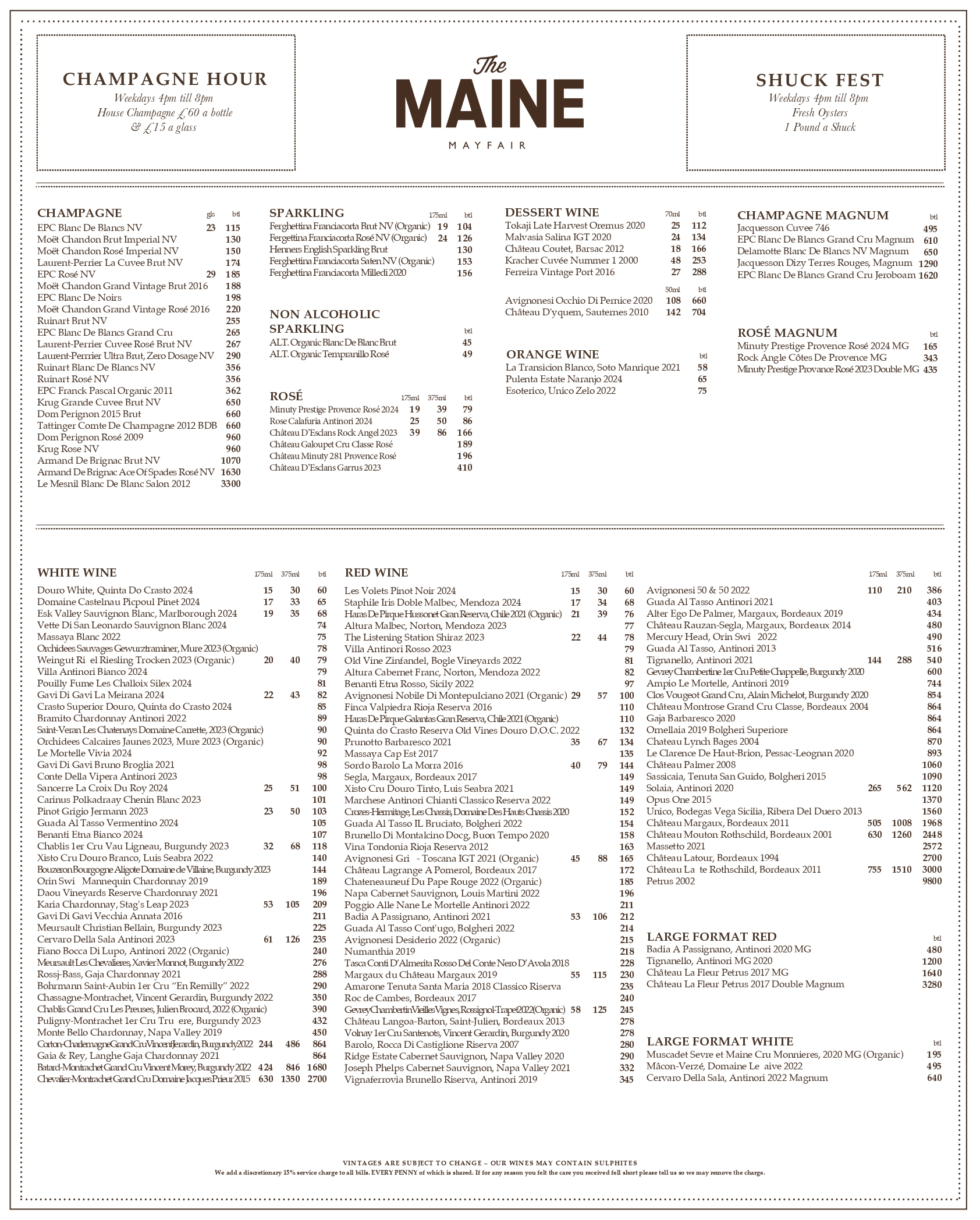 Prix Fixe Menu (2 courses for £35 per person, 3 courses for £40 per person):